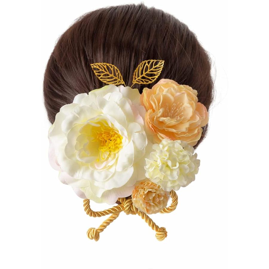 Viyien 髪飾り 造花 手作り 成人式 卒業式 新品入荷 結婚式 七五三 ヘアアクセサリー 振袖 着物 和装 袴 浴衣 003a 金の葉 スーツ 白い 花